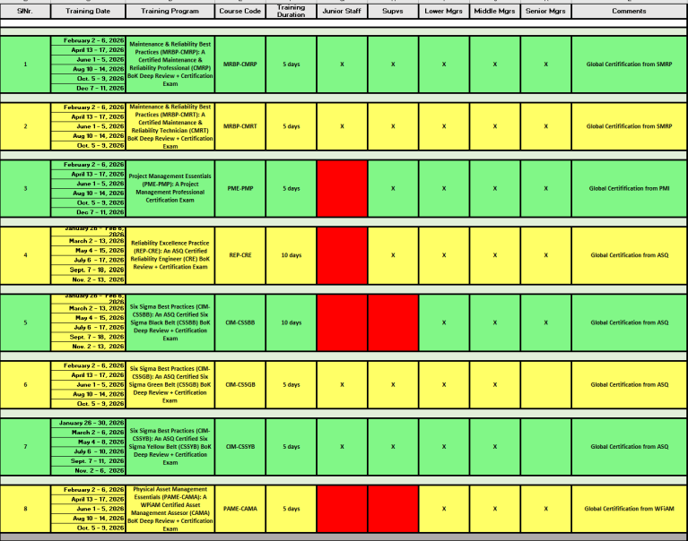 Calendar – Beina Maintenance & Reliability Services Ltd™